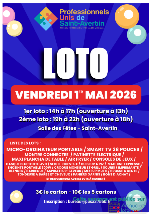 Les prochains lotos à Saint-Avertin et ses alentours :