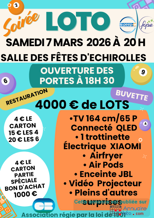 Vous avez envie de passer une soirée sympa tout en soutenant les projets de nos collégiens ? Les associations PEEP et FCPE vous attendent nombreux pour leur loto annuel !