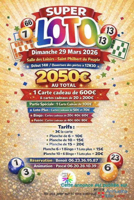 SUPER LOTO organisé par le Comité des fêtes de Saint Philbert du Peuple