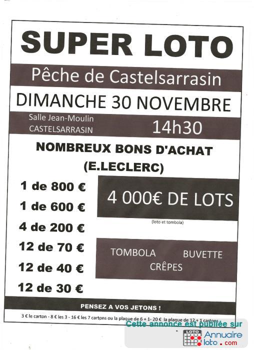 SUPER LOTO PECHE CASTELSARERASIN 4000€ de lots